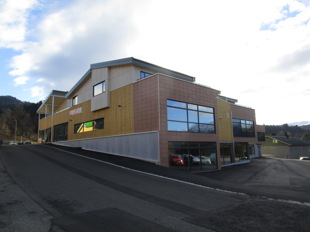 Bygg i 3 et. med bærekonstruksjoner i betong og stål med etasjeskiller av hulldekker.
